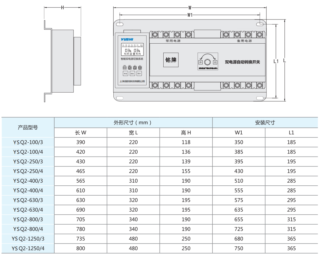 YSQ2系列智能双电源自动切换系统适用于交流 50Hz,额定电压400V,额定电流至1250A 的双路电源的供电系统中,