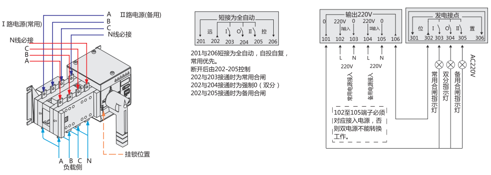 3.远程控制(远控):即远距离操作控制,启动""档按钮,则常用电源投入工作;启动" 档按钮,则备用电源投入工作。
