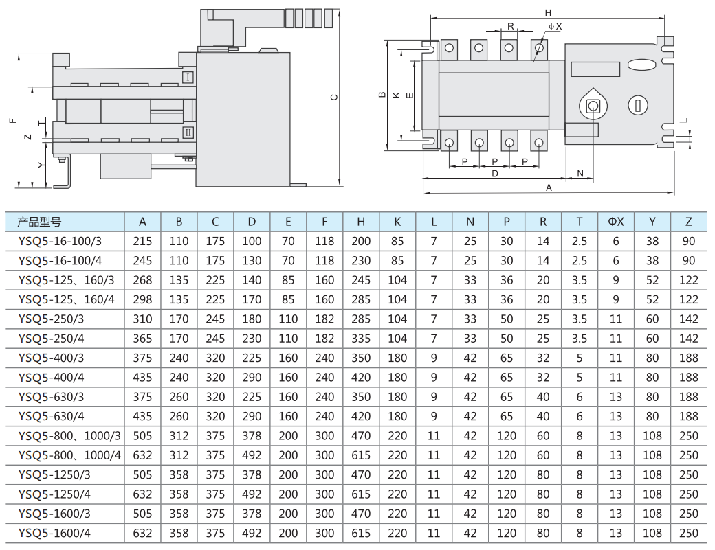 YSQ5系列双电源自动转换开关(ATSE)。是集开关与逻辑控制于一体、真正实现机电一体化的新型自动转换开关,它适用