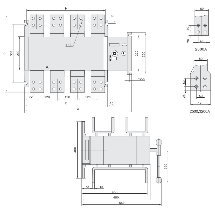 YSQ5-2000~2500A双电源开关的外形与安装尺寸